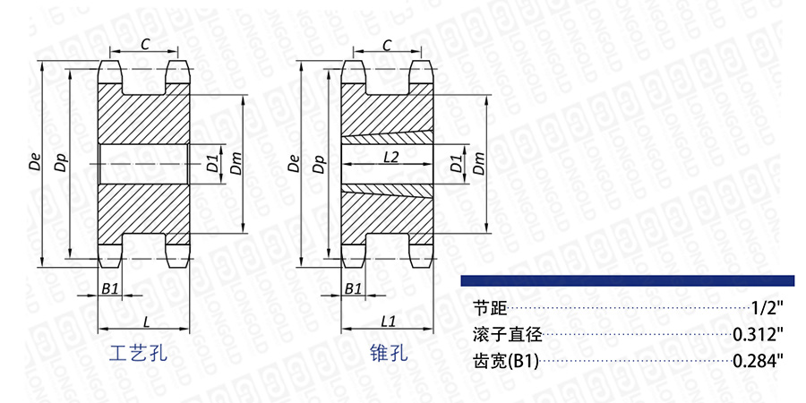 注:帶錐孔雙驅(qū)動(dòng)鏈輪的參考重量?jī)H為鏈輪重量,不包含錐套重量。