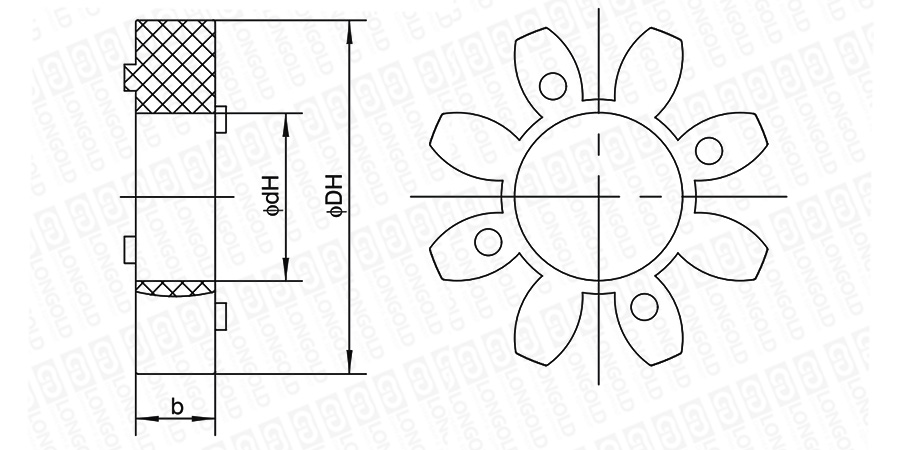 上圖為GE梅花聯(lián)軸器膠墊的結(jié)構(gòu)圖。