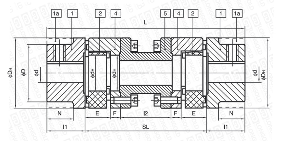 上圖為GEL梅花聯(lián)軸器鋼制的結(jié)構(gòu)圖。