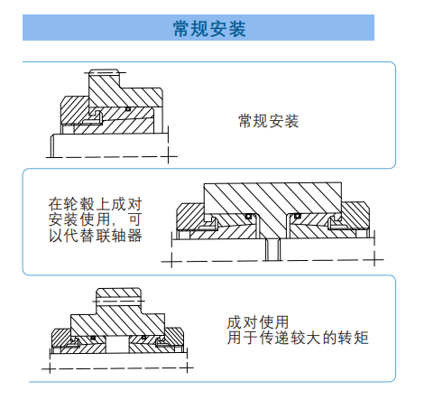 ?動定?,不需要額外附加設備來確保軸和輪轂的同軸度,擰緊螺?即可安裝完成;反向旋轉(zhuǎn)螺?使螺?松開,內(nèi)外環(huán)即可分離,拆卸也很容易。