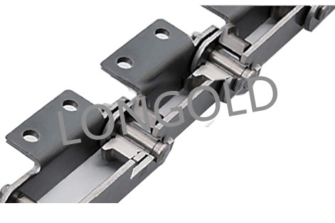 雙鉸接輸送鏈條設(shè)計用于能夠在空間范圍內(nèi)沿彎曲封閉軌道平穩(wěn)運行的輸送系統(tǒng),常見于輕型封閉軌懸掛輸送機。它的結(jié)構(gòu)允許在多個方向上靈活移動,適用于復(fù)雜的輸送路線。