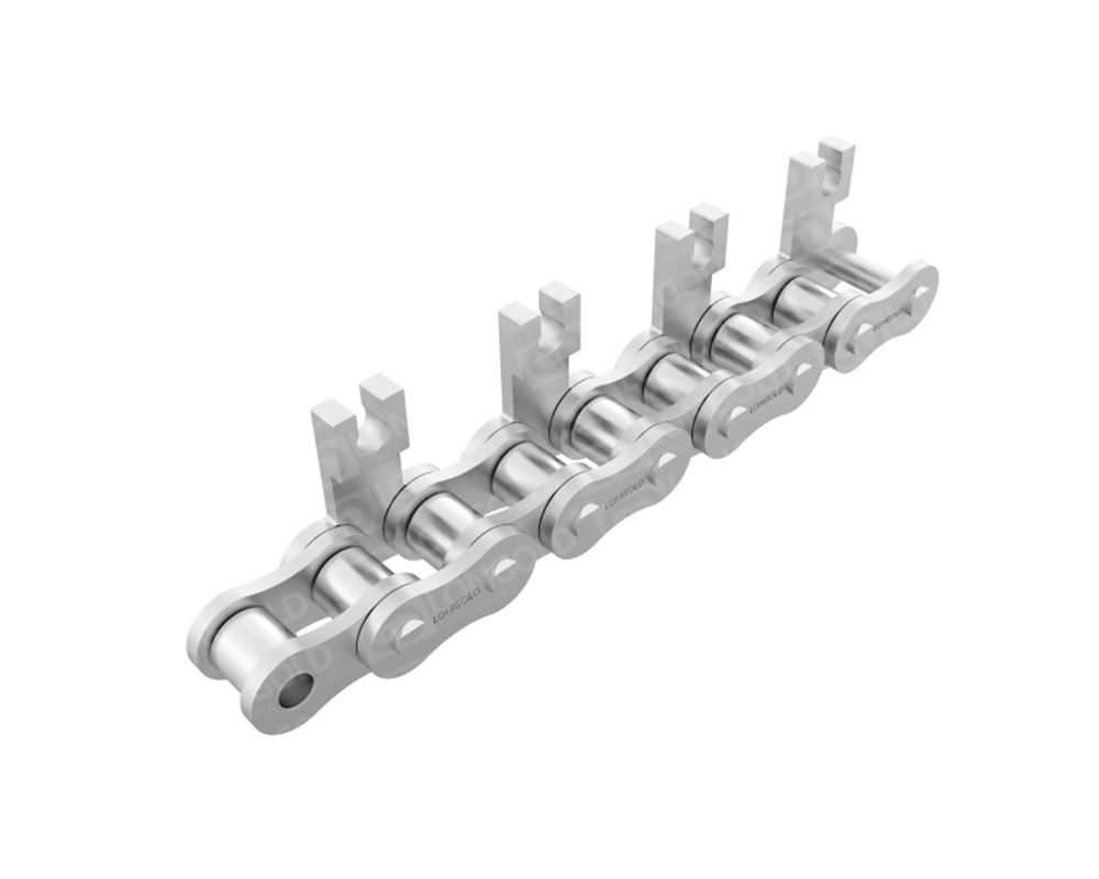 單排果凍機(jī)鏈,生產(chǎn)果凍裝置的驅(qū)動(dòng)鏈條,參與果凍生產(chǎn)冷卻、凝固、脫模等多個(gè)步驟,鏈條整體采用SUS304不銹鋼材質(zhì),在果凍生產(chǎn)環(huán)境中,能夠有效抵御水汽、糖分以及各種清潔消毒劑的侵蝕。