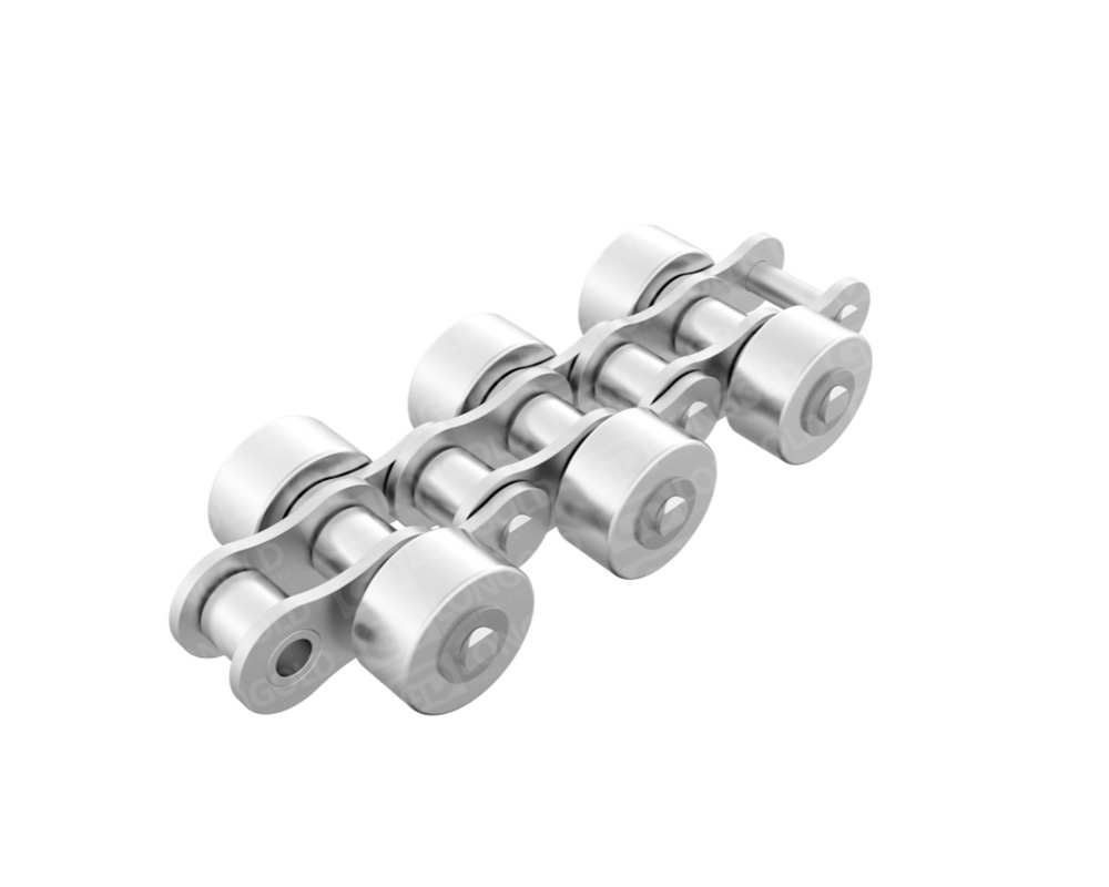 不銹鋼帶側(cè)滾輪輸送鏈?zhǔn)且环N特殊設(shè)計(jì)的鏈條,它在傳統(tǒng)的輸送鏈基礎(chǔ)上增加了側(cè)置滾輪,這些滾輪可以是塑料或鋼制的,用于提高輸送效率和減少摩擦。