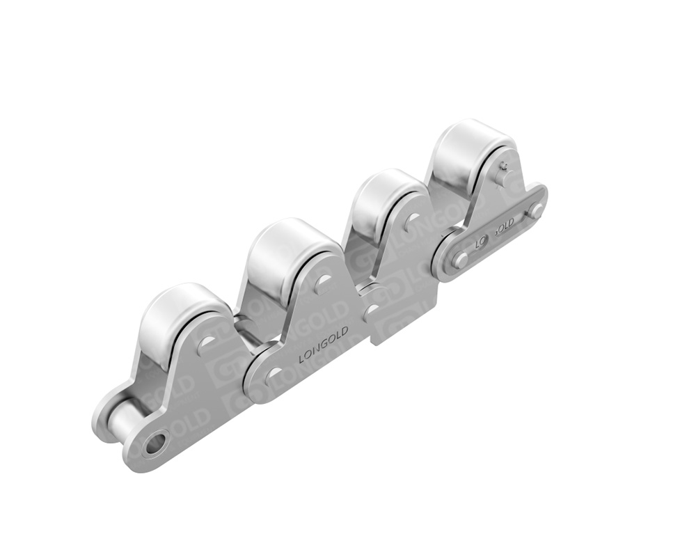 不銹鋼帶頂置滾輪雙節(jié)距輸送鏈