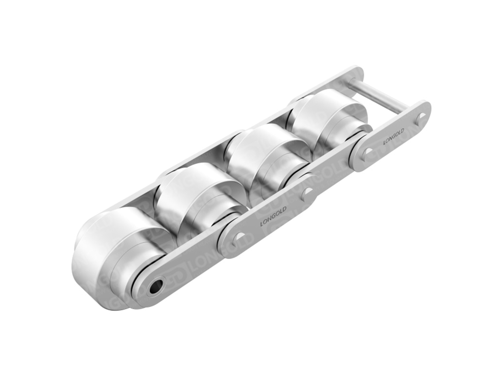 帶頂置滾輪輸送鏈設(shè)計用于在輸送系統(tǒng)中提供平穩(wěn)的物料搬運,頂置滾輪有助于減少摩擦,特別是在需要鏈條在特定角度或方向上移動的應(yīng)用中。