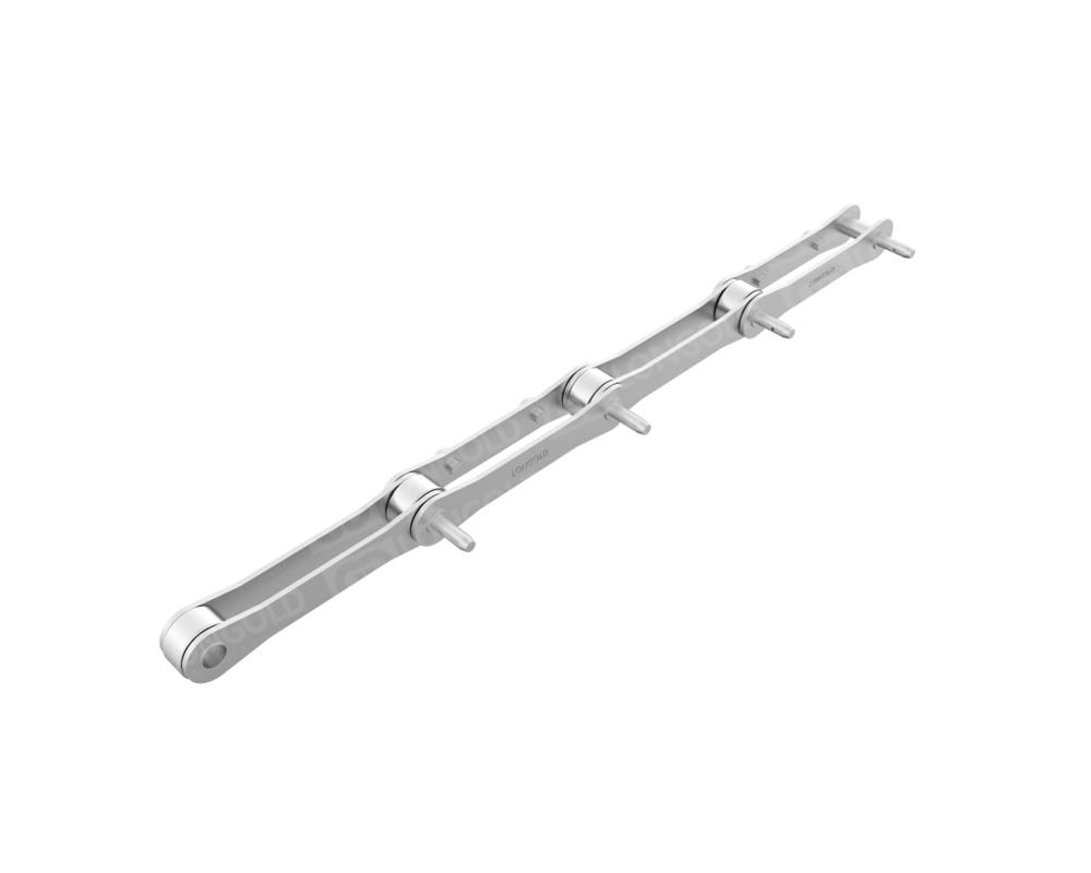 冰淇淋生產(chǎn)線用不銹鋼輸送鏈,生產(chǎn)冰淇淋、雪糕裝置的驅(qū)動(dòng)鏈條,鏈條整體采用SUS304不銹鋼材質(zhì),在冰淇淋、雪糕生產(chǎn)環(huán)境中,能夠有效抵御水汽、糖分以及各種清潔消毒劑的侵蝕