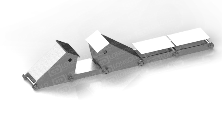 依靠鏈板底部底座附帶的折彎板上的孔將鏈條固定,能防止鏈條在運輸過程中出現(xiàn)抖動蛇形等情況,同時鏈板為直板型,方便鋼材的放置和運輸。