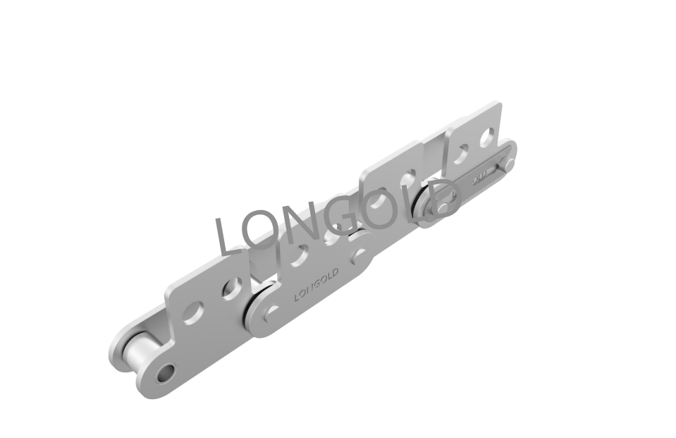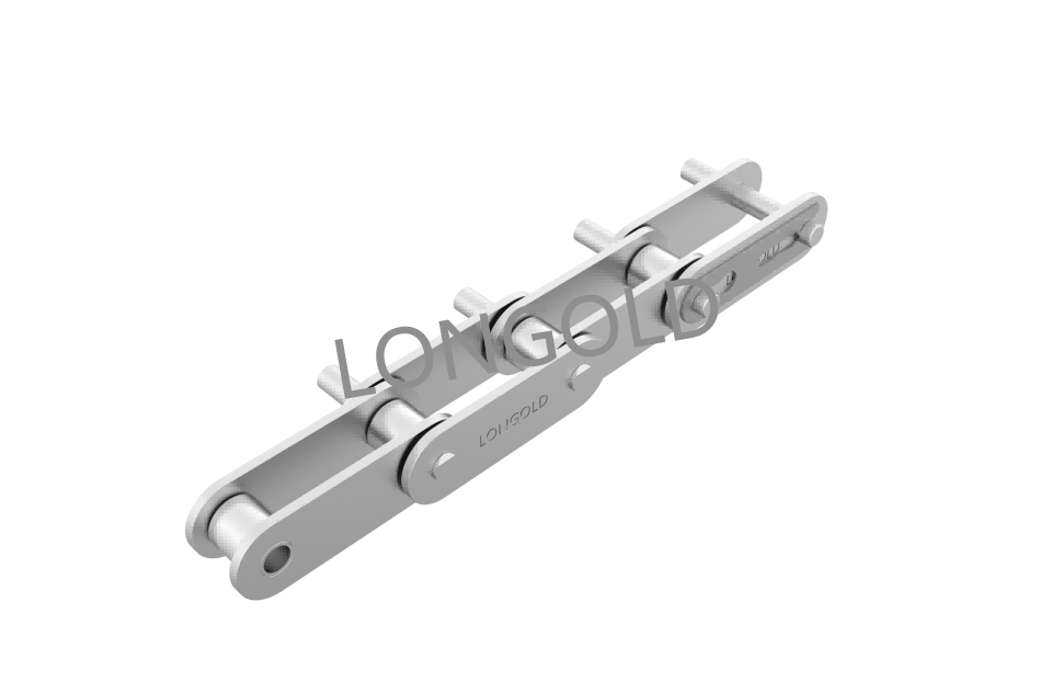 使用18-8SUS相當(dāng)于SUS304材料,銷(xiāo)軸和套筒之間插入特殊工程塑料制襯套。是具有免加油且長(zhǎng)壽命特點(diǎn)的雙倍節(jié)距輸送鏈。