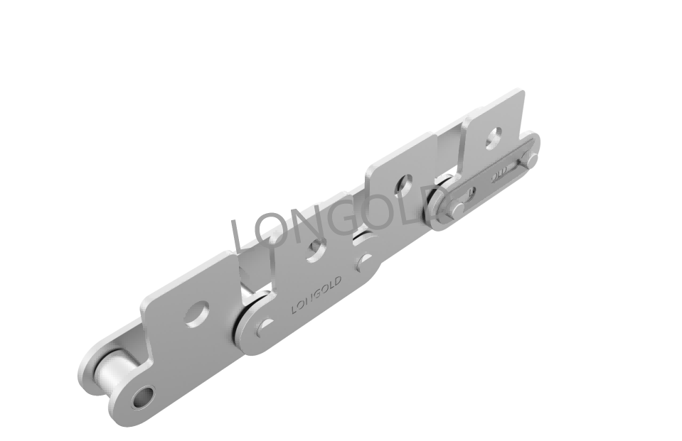 通過各種材料的組合,可在水中、酸、堿、等腐蝕性環(huán)境及低溫、高溫的特殊環(huán)境中使用的耐環(huán)境雙倍節(jié)距輸送鏈條。